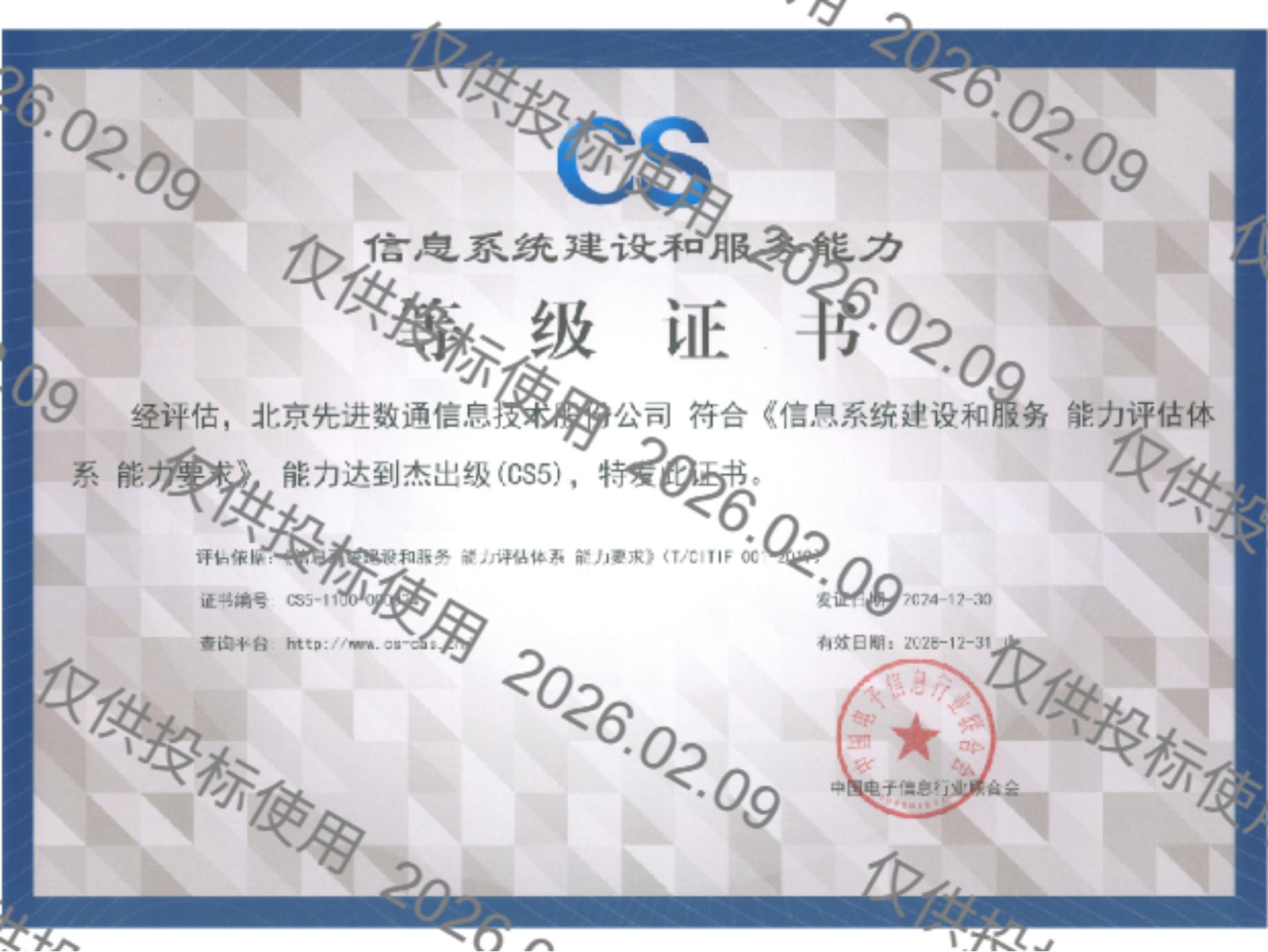 evo真人视讯先后取得CMMIL5、软件能力成熟度五级(SPCA 5)、信息系统建设和服务能力评估体系(CS)5级、ITSS成熟度一级、信息系统安全集成服务资质二级、信息系统安全运维服务资质二级、国产化信息系统集成和服务能力评估四级(LS4)、北京市企业技术中心等资质认证,并取得ISO9001、ISO20000、ISO27001、ISO14001、ISO45001、ISO22301、ISO37001、ISO28001、GBT29490等标准体系认证,具备行业领先的技术开发、工程实施及服务保障能力。